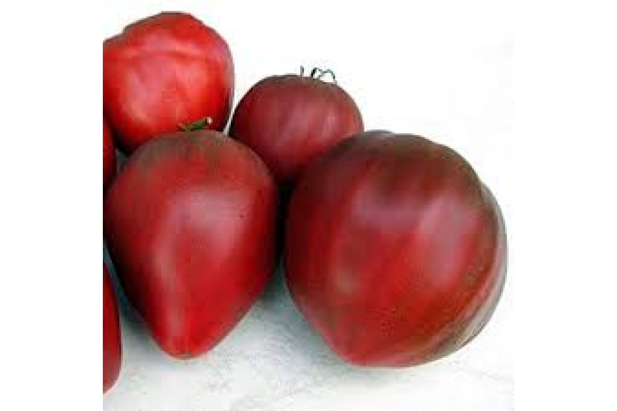 Томат Бычье сердце Чёрное – прекрасный сорт, рекомендованный профессионалам и новичкам. Томат отличает медовая сладость плодов в сочетании с огромными размерами. Выращивать можно в любых регионах – от северных до южных. Плоды тёмно-бордовые сердцевидные, крупные 300-400 грамм (до 600 гр), главное достоинство - очень вкусные. Урожайность средняя, опытные огородники выращивают этот сорт - ради вкуса. Равномерно плодоносит на всех кистях, в кисти 2-4 плода. Плоды: сердцевидные помидоры редкой тёмно-бордовой с пурпурным оттенком окраски. Мякоть мясистая, очень тёмная.